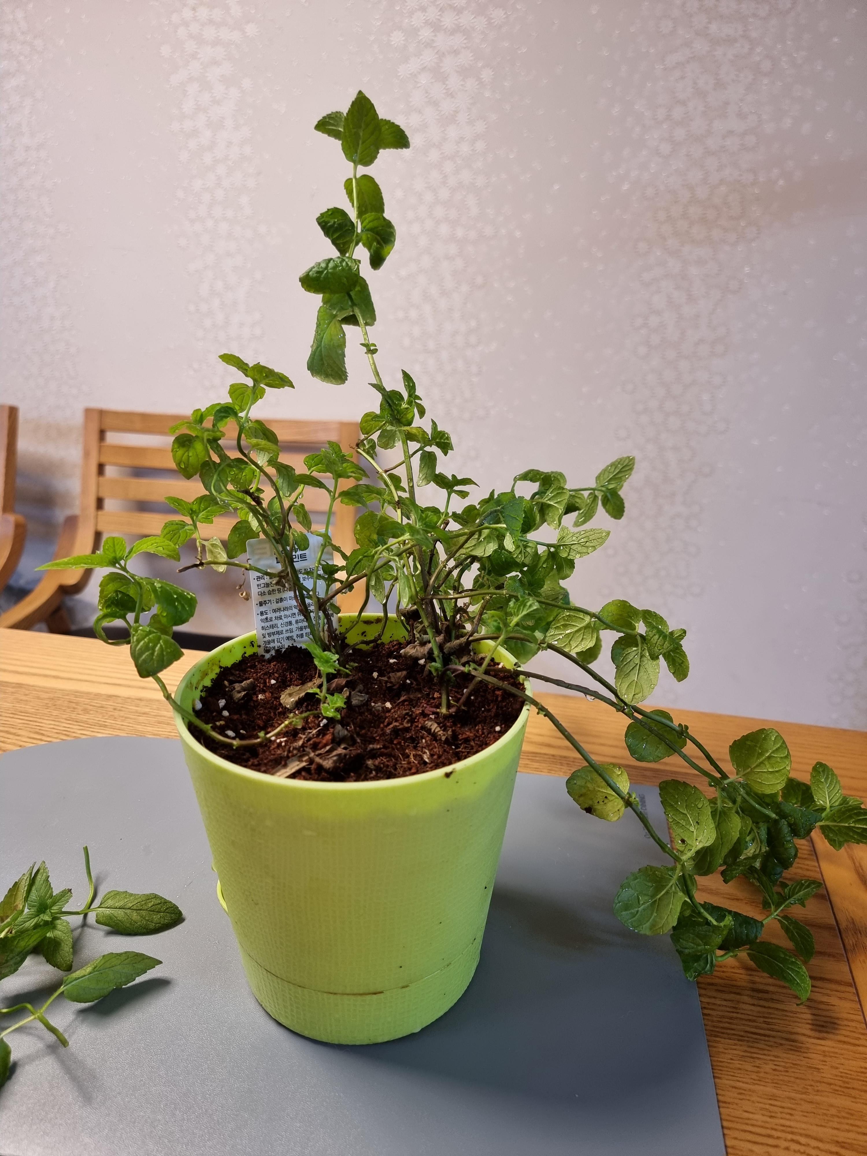페퍼민트는 의외로 키우기가 쉬우면서도 어려운 것 같다. 자랄 때에는 잘 자라지만 바질보다는 벌레가 생기기 쉬운 것 같고 분명 꾸준히 관리해 주는데도 어느 순간에 잎이 마르고 떨어진다. 가지들을 잘라주면 금방 곁가지들이 나온다. 키우기 쉽다는 뜻. 그러니 금방 자랄 것이다.