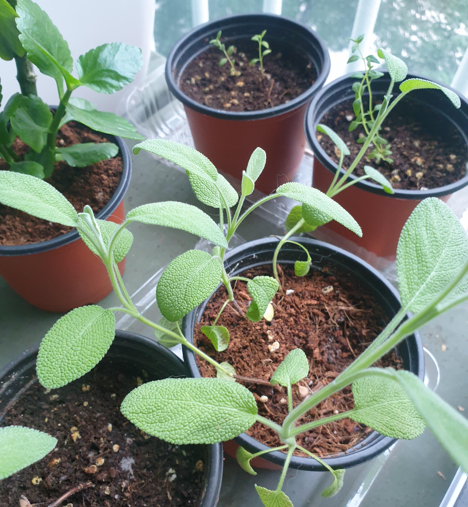 병은 없지만 제일 빈약하게 자라고 있는 세이지. 완전 웃자라고 있는 상태다. 이건 베란다에서 키울 허브는 아닌 것 같다. 빛이 많이 필요한 것 같고 흙도 영향을 주는 것 같다. 흙은 상토를 썼는데 배수력이 아주 좋아야 할 것 같다. 물을 주게 되면 흙이 오랫동안 젖어 있어 가뜩이나 빛이 부족한 환경에서 웃자라게 만드는 원인이 되는 것 같다.