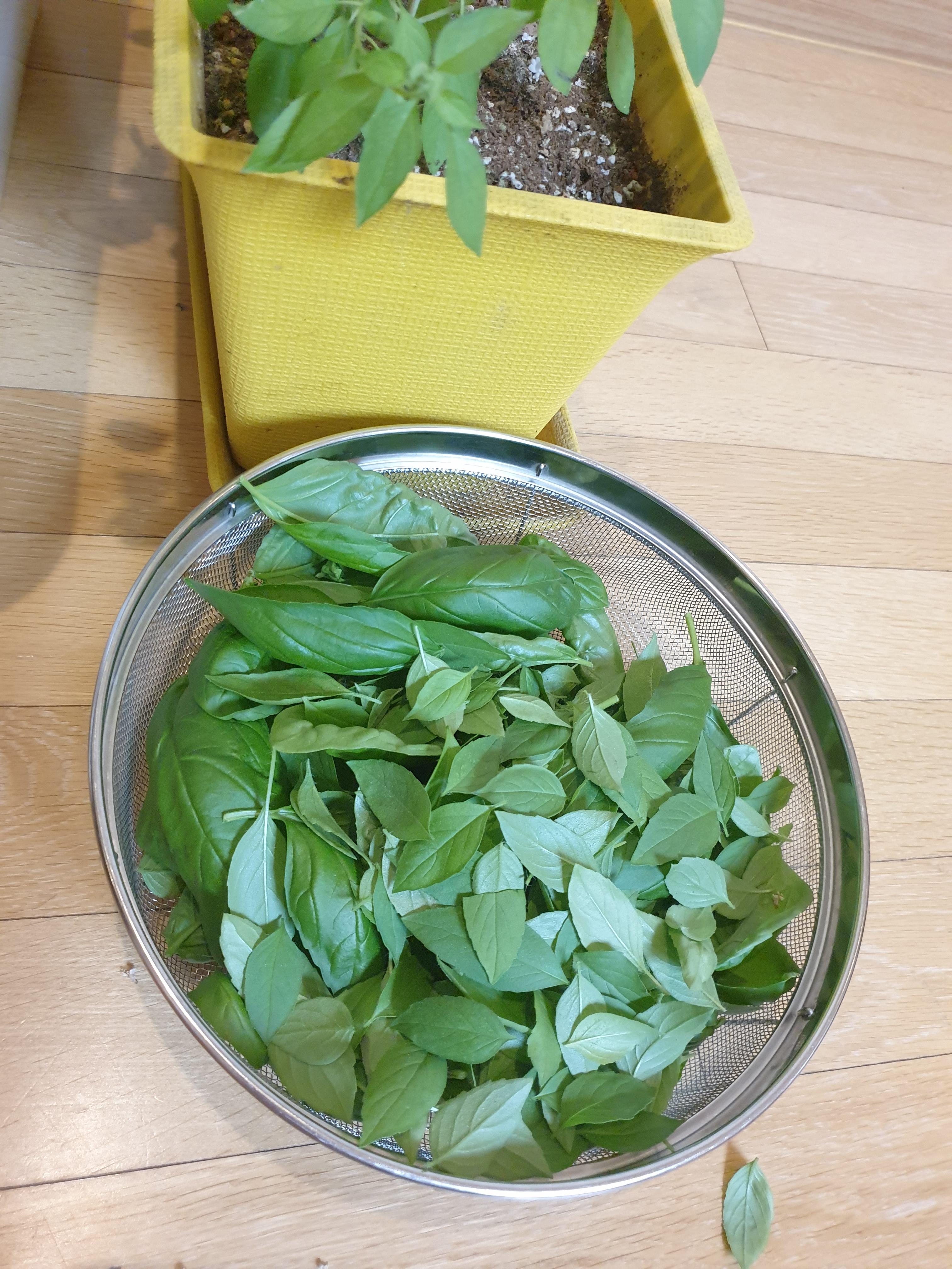 바질이 무작정 위로만 자라고 꽃도 많이 핀지라 잎도 따고 꽃대를 잘라주었다.