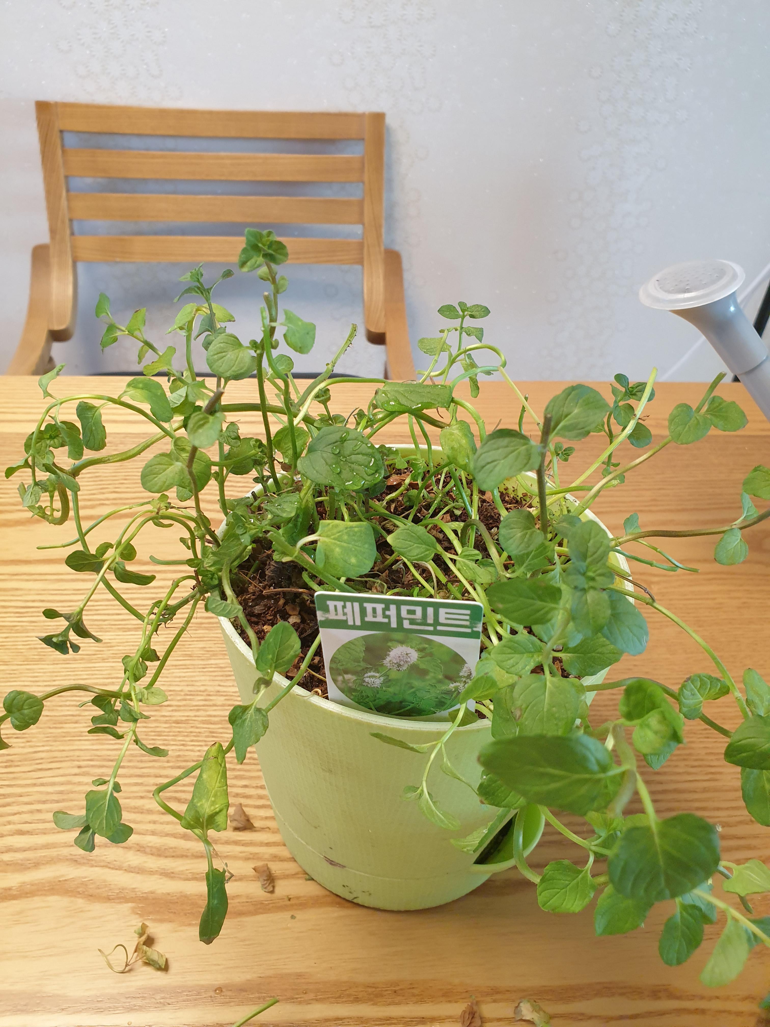 화분을 살피다 페퍼민트도 가지들을 정리했다.
