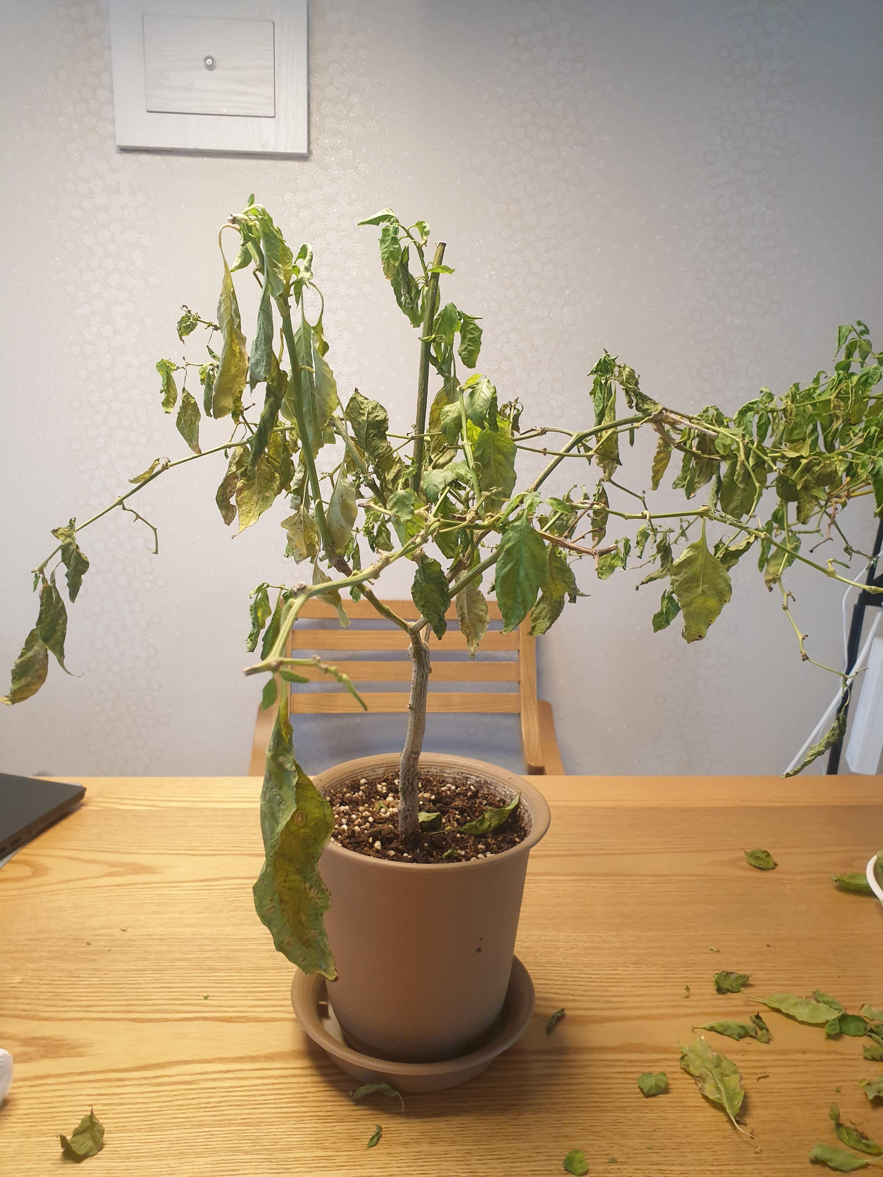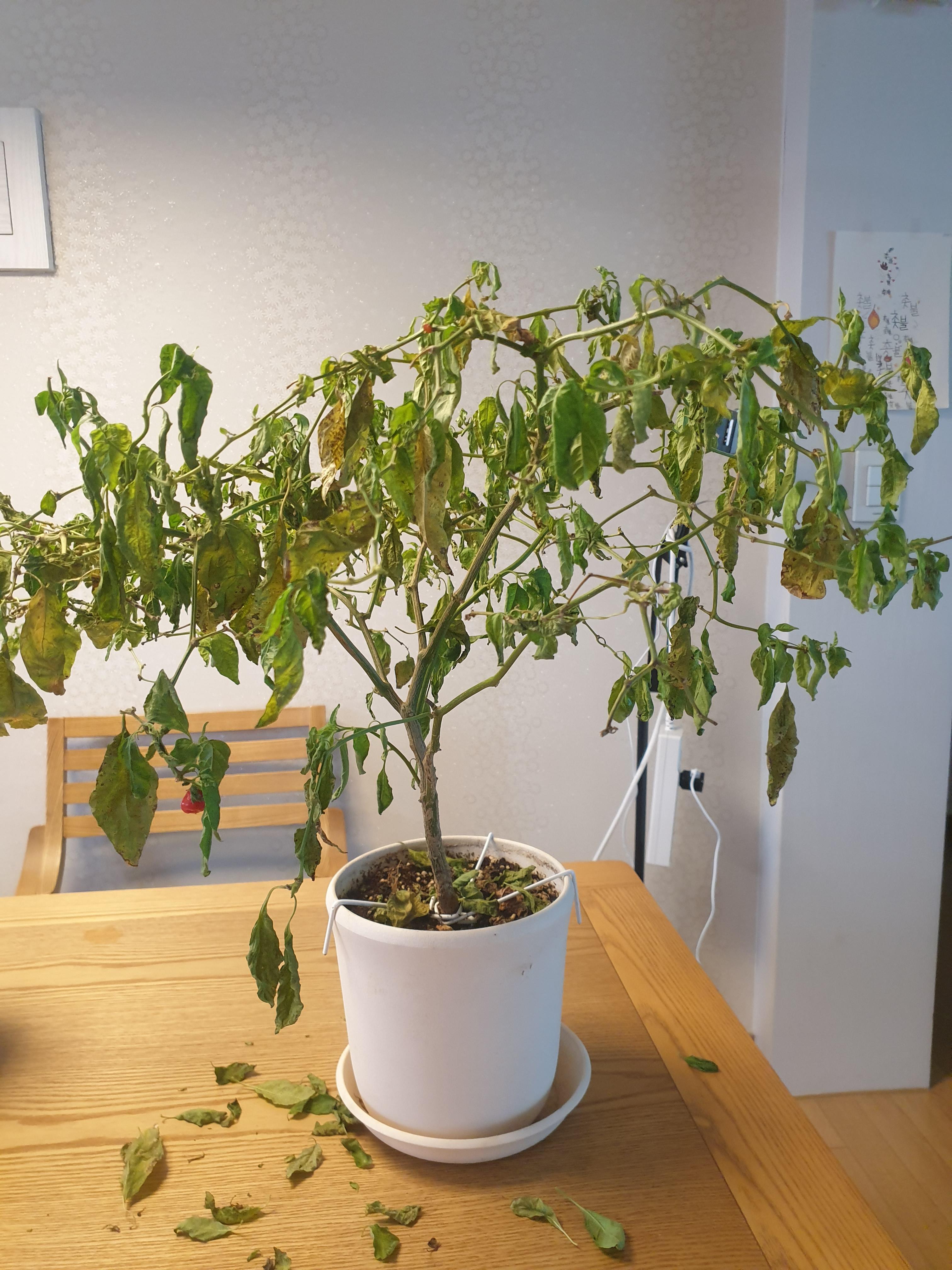 베란다에 방치되어 있는 하바네로의 상태가 좋지 못했다. 베란다가 매우 춥다 보니 입이 대부분 시들고 힘이 없다. 실내에 미리 옮겼어야 했나 생각했지만 작년 겨울도 베란다에서 이겨낸 터라 그냥 둘까 하다가 실내에 자리를 옮기기 위해 잎과 가지를 정리했다.