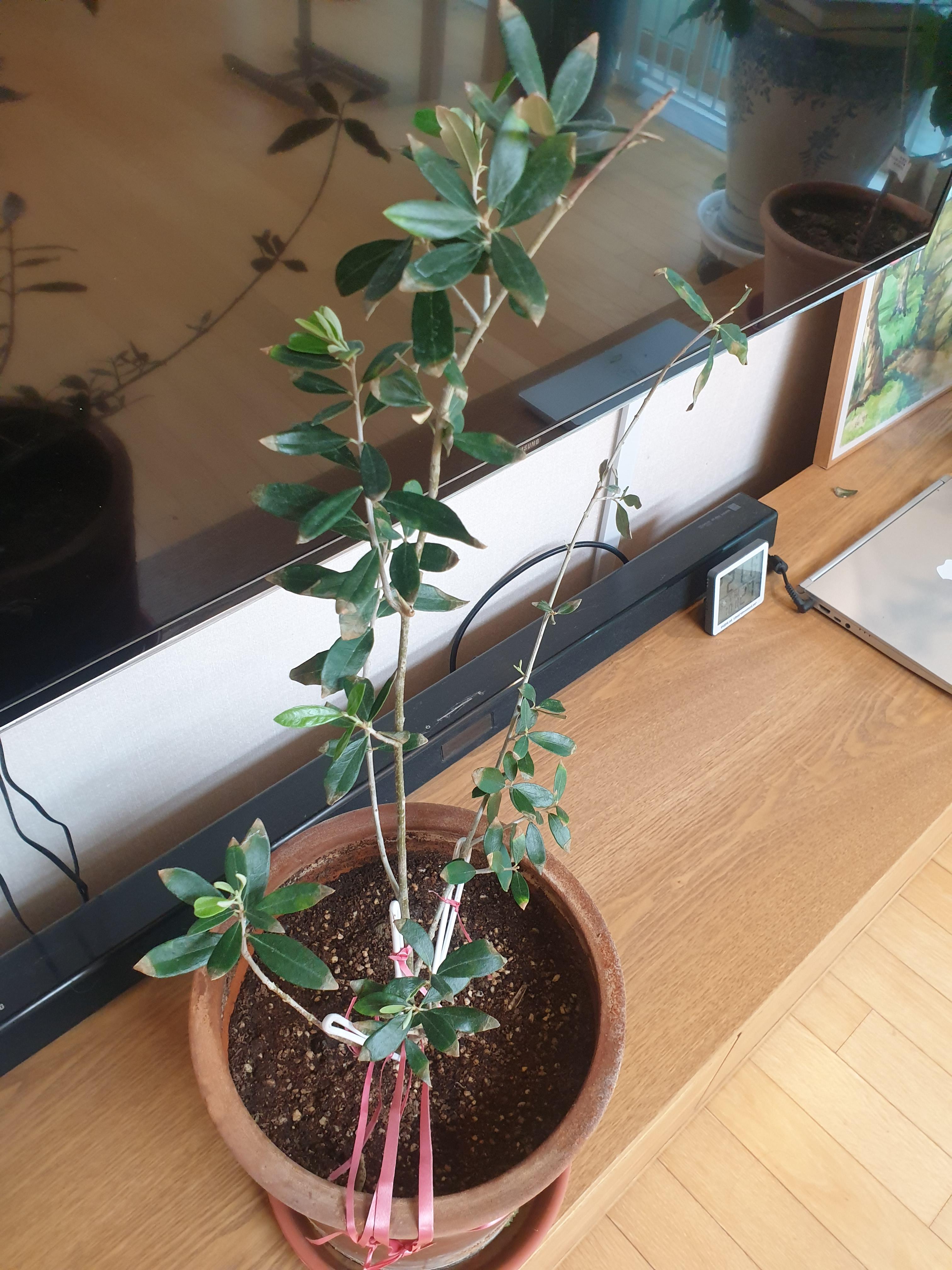 올리브는 문제가 조금 심각하다. 새잎들이 나오고는 있지만 원래 달려있던 잎들이 하나둘씩 떨어지고 있다. 추측컨대 습도가 낮아서 생기는 문제일 것이다. 원래 물이 조금 부족해도 잘 자라는 올리브이지만 이런 실내는 올리브에게는 혹독한 곳이다.
